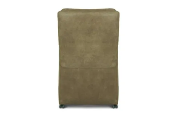 Deze stoel wordt standaard uitgevoerd met parketwieltjes en zonder handgreep op de rugleuning.