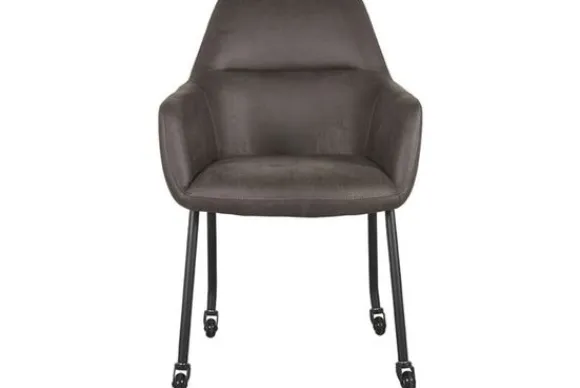 Eetkamerstoel Lenny, gestoffeerd met micro suède, heeft een forse zitting met armleuningen, wat bijdraagt aan het hoge comfort van de stoel. Lenny is extra handig omdat deze stoel voorzien is van wieltjes en een handvat aan de achterkant van de rugleuning. De combinatie van de wielen en het greepje zorgen ervoor dat Lenny een mobiele eetstoel is, die heel gemakkelijk is aan te schuiven aan de eettafel. Kortom, Lenny is de perfecte eetkamerstoel voor wie op zoek is naar een handige én comfortabele eetkamerstoel, met een moderne uitstraling.