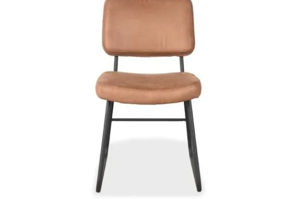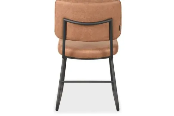 Eetkamerstoel Noah is uitgevoerd in cognac suède, een bruinkleurige stof met een hele subtiele structuur. Noah bestaat uit een rechthoekige rugleuning voorzien van afgeronde hoeken, aparte rugleuning en zitting, die verbonden zijn door een prachtig doorlopend zwart frame, voorzien van een handgreep op de achterkant van de rugleuning. Dit maakt Noah extra functioneel waardoor het aanschuiven van deze eetkamerstoel nog makkelijker wordt. De sledepoot zorgt voor een luchtig en elegant uiterlijk.
