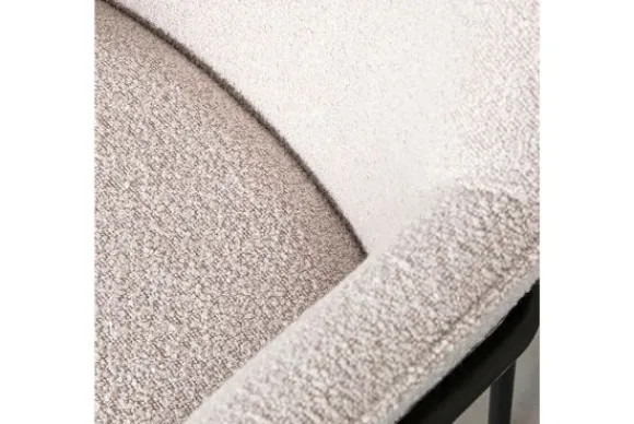 Dexter, uitgevoerd in naturel boucle heeft een ronde, robuuste zitting voorzien van elegante rondingen en armleuningen. De mooie ‘curve’ van de zitting naar de arm- en rugleuning geeft deze stoel ontzettend veel charme en comfort. De combinatie van de robuuste en grove zitting en het subtiele zwarte frame maakt deze stoel tot een extra uniek exemplaar. De zitting lijkt bijna te zweven tussen het frame!