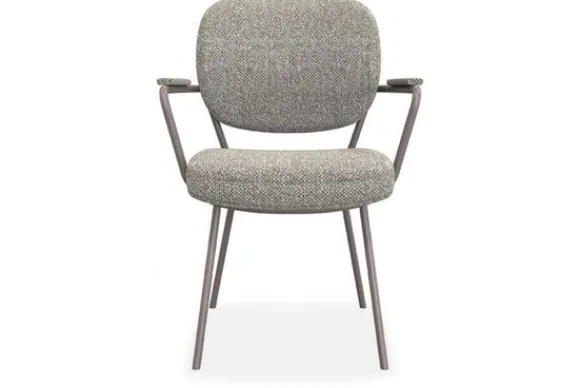 Het frame is afgestemd op de stoffering en zorgt voor een rustige ton sur ton uitstraling. Deze afwerking geeft de stoel een verzorgd en evenwichtig geheel aan de eettafel.