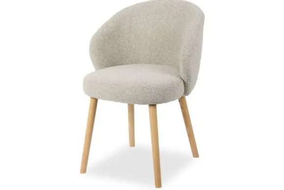 Eetkamerstoel Shiro DA-89.002 van het merk Label51 is een praktische stoel met Scandinavisch ontwerp. De stoel is bekleed met de zachte stof Royal Bouclé Natural 110 en heeft houten poten in de kleur Naturel Eiken.