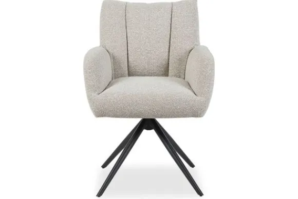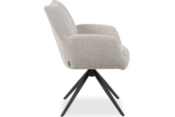 Eetkamerstoel Padua XY-91.008 van het merk LABEL51 valt op door zijn stijlvolle en zachte vorm. De draaibare spinpoot, gecombineerd met bouclé bekleding in de kleur Naturel, geven de stoel een warme en hedendaagse uitstraling, terwijl de elegante lijnen van de rug en armleuningen zorgen voor een comfortabele en uitnodigende zit. De verticale stiknaden in de rugleuning brengen een luxe uitstraling die op een subtiele manier diepte en karakter toevoegt.
