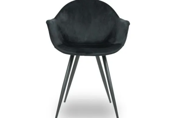 Eetkamerstoel Forli FF-45.035 zwart van het merk Label51 is uitgevoerd in Black velvet (Velvet G108-77), en heeft een zeer luxe en comfortabele kuip voorzien van elegante rondingen en armleuningen.
