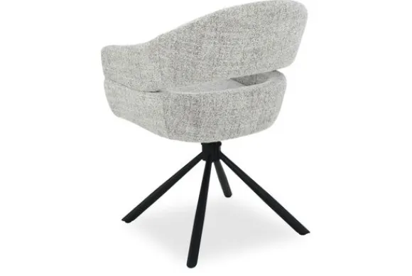 Eetkamerstoel Linn van het merk Livingfurn is een elegante verschijning met een grijs gemĂȘleerde stof die een tijdloos en stijlvol accent aan je eetruimte geeft. De zachte rondingen van de rugleuning vloeien naadloos over in de armleuningen, wat zorgt voor een comfortabele zitervaring en een uitnodigend silhouet.