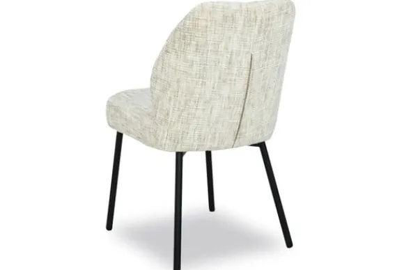 Eetkamerstoel Tess van het merk Livingfurn is een stijlvolle verschijning in een zachte, neutrale tint die direct rust en harmonie uitstraalt. De bekleding heeft een verfijnde, licht gemĂȘleerde structuur met een speelse kruisdraad, wat zorgt voor een subtiel textuurspel dat zowel modern als tijdloos oogt.