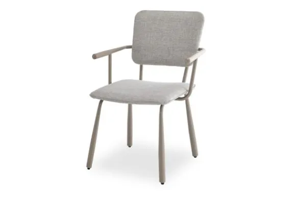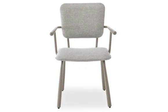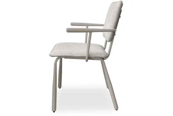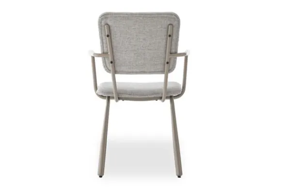 Eetkamerstoel Finn van het merk Livingfurn straalt verfijnd design uit met zijn slanke, chique beige stalen onderstel en armleuningen. De lichte stof zorgt voor een fris moderne geheel die perfect past in elke eetkamer. Comfort en stijl worden moeiteloos gecombineerd in deze elegante stoel.