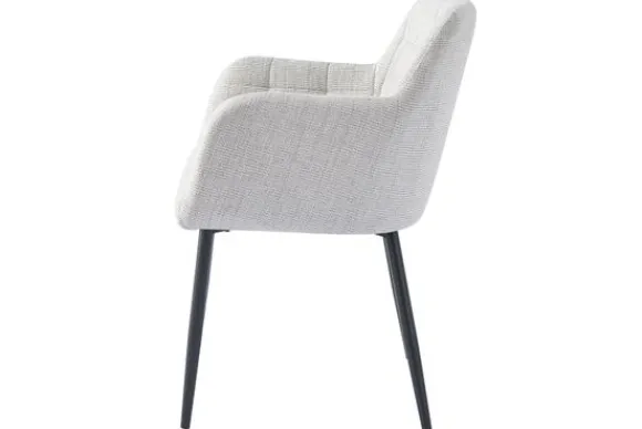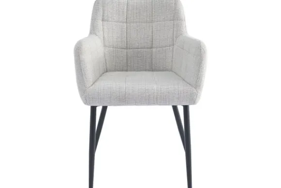 Eetkamerstoel Bronco Greige van het merk Livingfurn is verkrijgbaar in verschillende kleuren. Deze comfortabele kuipstoel heeft armleuningen voor extra zitcomfort en poten van gecoat staal.