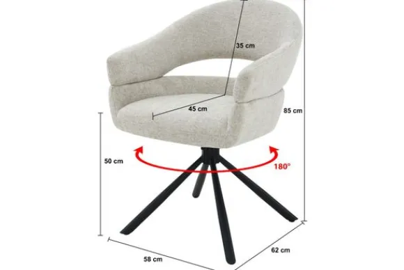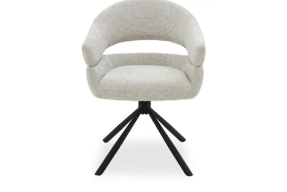 Dankzij het zwart metalen onderstel met vier taps toelopende poten krijgt deze stoel een subtiel industrieel randje. Dankzij het 180 graden draaimechanisme biedt Linn extra gebruiksgemak, perfect voor dynamische gesprekken aan tafel of flexibel gebruik in een open eetkameropstelling.