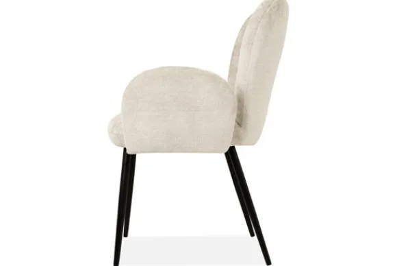 Deze eetkamerstoel wordt standaard uitgevoerd met rechte, zwarte metalen poten.
