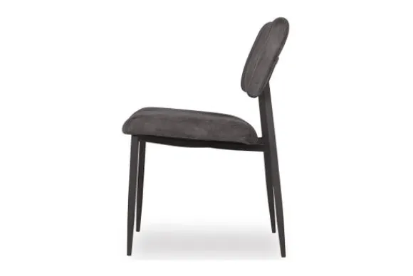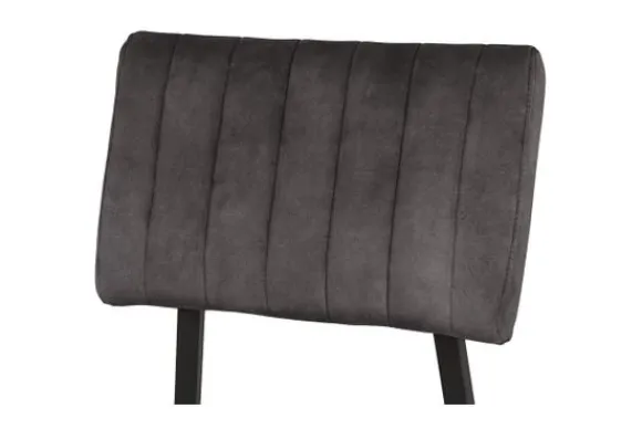 Eetkamerstoel Mera – Antraciet van het merk Olijk is beschikbaar in verschillende kleuren velvet stof. Deze stoel is bekleed met de stof Goldy Antraciet en heeft een metalen frame en verticale stiksels in de zitting en rugleuning. De stoel oogt ruimtelijk door de opening tussen de zitting en de rugleuning. Velvet is makkelijk te reinigen, slijtvast en goed bestendig tegen bijvoorbeeld nagels van huisdieren. Verder heeft deze stof een mooie vleug, wat zorgt voor een chique en hippe uitstraling.