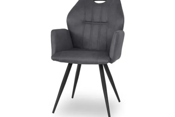 Eetkamerstoel Ozark – antraciet van het merk Olijk is beschikbaar in vier verschillende kleuren: antraciet, cognac, moss en taupe. Deze stoel is bekleed met microvezel Zorro. Microvezel is makkelijk te reinigen, slijtvast en goed bestendig tegen bijvoorbeeld nagels van huisdieren. Verder heeft deze stof een mooie vleug, wat zorgt voor een chique en hippe uitstraling. De Ozark heeft zwart metalen poten en is voorzien van armleuningen. Bovenaan de rugleuning heeft de stoel een handgreep, zodat je de stoel helemaal makkelijk kunt verplaatsen!