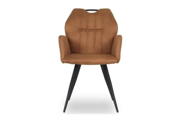 Eetkamerstoel Ozark – cognac van het merk Olijk is beschikbaar in vier verschillende kleuren: antraciet, cognac, moss en taupe. Deze stoel is bekleed met microvezel Zorro. Microvezel is makkelijk te reinigen, slijtvast en goed bestendig tegen bijvoorbeeld nagels van huisdieren. Verder heeft deze stof een mooie vleug, wat zorgt voor een chique en hippe uitstraling. De Ozark heeft zwart metalen poten en is voorzien van armleuningen. Bovenaan de rugleuning heeft de stoel een handgreep, zodat je de stoel helemaal makkelijk kunt verplaatsen!