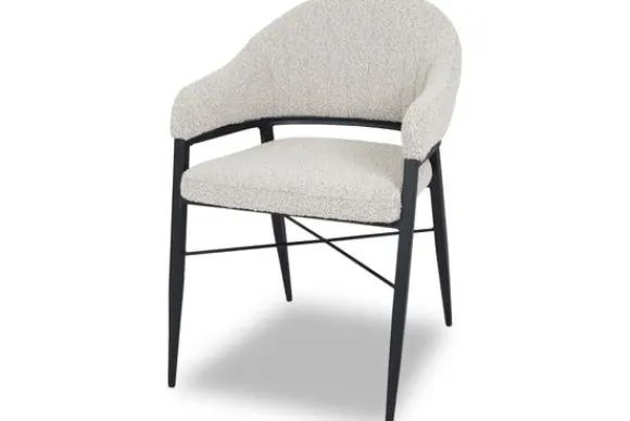 Eetkamerstoel Okke pearl van het merk Olijk is verkrijgbaar in de stof Touch in de kleuren; Mouse, Pearl en Toffee. De eetstoel heeft verticale stiksels in de rugleuning lopen wat voor een mooi ontwerp zorgt. De rugleuning loopt naadloos over in de armleuning, deze ronding zorgt voor een fijne ondersteuning van de rug en creëert een mooi geheel. De zwarte, metalen poten maken deze stoel helemaal af!