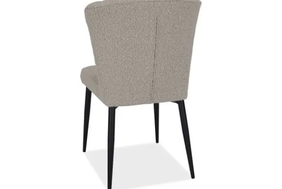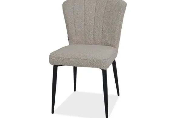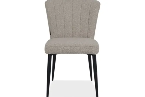Eetkamerstoel Trije Toffee van het merk Olijk is verkrijgbaar in de kleuren; Mouse, Pearl, Rhino en Toffee. Deze stoel is bekleed met de stof Touch Toffee. De eetstoel heeft verticale stiksels in de rugleuning lopen wat voor een mooi ontwerp zorgt. De rugleuning loopt naar buiten af wat voor een comfortabele zit en goede ondersteuning van de rug zorgt. De zwarte, metalen poten zorgen voor een modern randje.