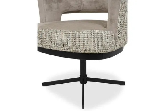 De zitvulling is uitgevoerd met koudschuim en pocketvering, wat zorgt voor veerkrachtig zitcomfort en langdurige ondersteuning. De stalen draaipoot maakt de stoel 360 graden draaibaar en is voorzien van een autoreturn functie, waardoor de zitting na gebruik automatisch terugdraait naar de oorspronkelijke stand, praktisch én strak in uitstraling. Onder de zitting loopt een houten rand, standaard uitgevoerd in zwart, maar optioneel verkrijgbaar in verfijnde kleuren zoals beuken, walnoot, wenge en wit.