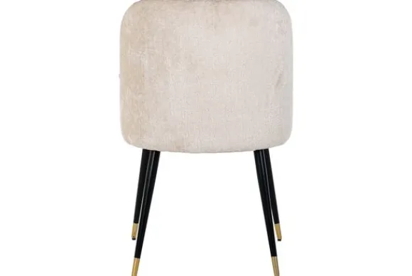 Eetkamerstoel Alicia 210855 White Chenille van het merk Richmond Interiors is gestoffeerd met FR-Bergen 900 white chenille. Op deze stoel is een brandvertragende stof gebruikt die ervoor zorgt dat de verspreiding van het vuur wordt vertraagd. Chenille is makkelijk te reinigen. Verder heeft deze stof een mooie glans en door de vezels ziet de stof er bij elke lichtinval anders uit. Tevens is de stof zeer comfortabel en zacht, wat zorgt voor een chique en warme uitstraling. De poten van deze stoel zijn gemaakt van metaal en hebben gouden details aan de onderkant.