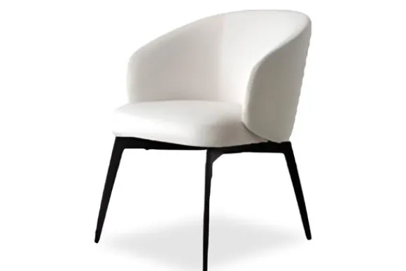 Eetkamerstoel Amphara 211690 van het merk Richmond Interiors is gestoffeerd in de kleur ‘FR-Bergen 900 White Chenille’. Het unieke onderstel dat in een hoek onder de stoel vandaan komt is gemaakt van zwart metaal. Met deze stijlvolle en comfortabele stoel breng je de gezelligheid in huis.