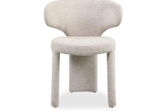 De eetkamerstoel is volledig gestoffeerd in stof Natural Linear en staat stevig op vier poten die naadloos zijn bekleed. De zitting is licht gebogen en biedt prettig zitcomfort tijdens lange diners.