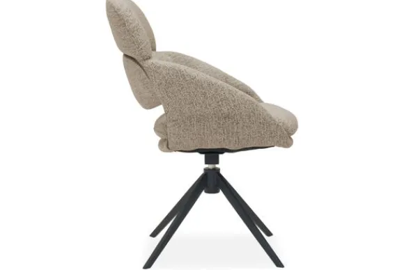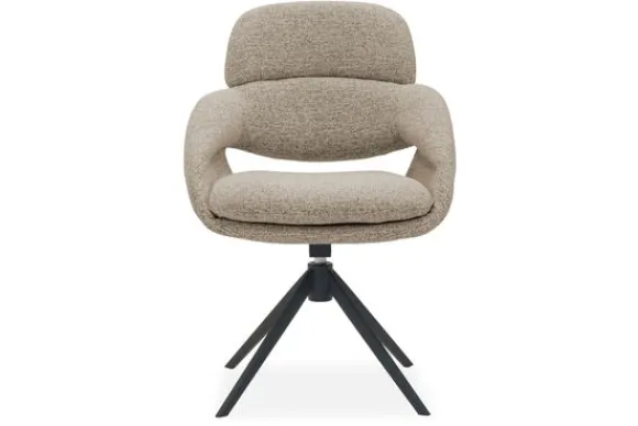 De zwarte, slanke poten in spinvorm geven de stoel een moderne en speelse elegantie. Dankzij het 360 graden draaimechanisme met autoreturn, waarbij de stoel automatisch terugdraait naar de oorspronkelijke stand, ervaar je gebruiksgemak zonder concessies aan luxe. Perfect voor in een Scandinavisch, Japandi of modern interieur.