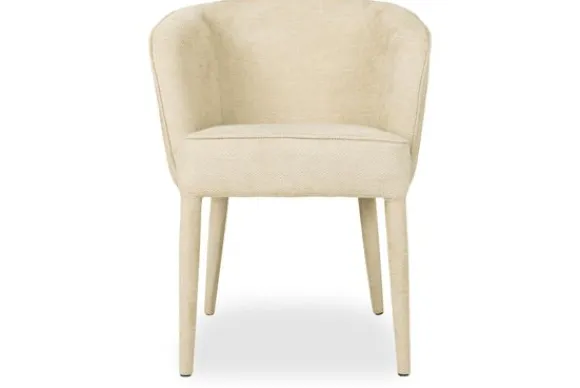 Eetkamerstoel Sansa van het merk Silla Comer is verkrijgbaar in drie verschillende kleuren. De eetkamerstoel is voorzien van een ronde rugleuning die langzaam overloopt in armleuningen, dit zorgt voor een optimaal zitcomfort, doordat deze goed aansluit aan jouw rug. De bekleding loopt door over de poten, dit zorgt voor een chique uitstraling.