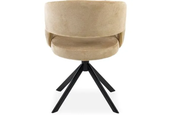 Eetkamerstoel Ekoda van het merk SitSmart is verkrijgbaar in verschillende kleuren. De eetkamerstoel is voorzien van een ronde rugleuning die geleidelijk overloopt in armleuningen. Onderaan de rugleuning zit een opening, dit zorgt voor een ruimtelijke uitstraling. De eetkamerstoel heeft een zwart metalen spinpoot met een 360 graden draaisysteem en een auto return. Bij het terugdraaisysteem is de stoel draaibaar en zal daarna uit zichzelf weer terugdraaien naar het midden, hierdoor heb je de vrijheid om jezelf in iedere gewenste richting te draaien.