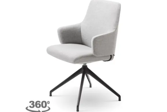 De stoel is 360 graden draaibaar en optioneel uit te voeren met een terugdraaisysteem. Hiermee draait de stoel na gebruik automatisch terug naar de oorspronkelijke positie.