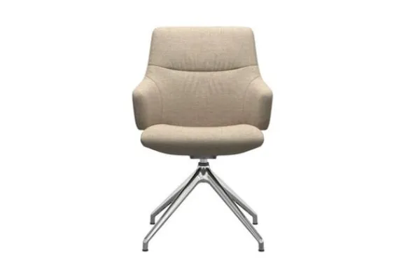 Eetkamerstoel Mint van het merk Stressless is verkrijgbaar in alle kleuren en verschillende materiaalsoorten als stof en rundleder. De eetstoelen van Stressless zijn uitgevoerd met het BalanceAdapt systeem. Dit systeem beweegt mee met je houding waardoor je goed rechtop kan eten, maar ook even onderuit kan natafelen! Met het strakke design zijn dit tijdloze stoelen waar je jarenlang van kan genieten. Deze stoel is 360 graden draaibaar waarbij gekozen kan worden voor een terugdraaisysteem. Bij het terugdraaisysteem kun je de zitting van de stoel draaien en daarna zal deze uit zichzelf weer terug draaien naar het midden.