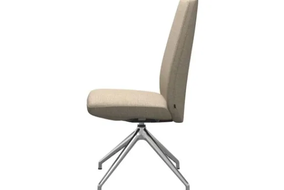 Eetkamerstoel Vanilla van het merk Stressless is verkrijgbaar in alle kleuren en verschillende materiaalsoorten als stof en rundleder. De eetstoelen van Stressless zijn uitgevoerd met het Balance&Glide systeem. Dit systeem beweegt mee met je houding, waardoor je goed rechtop kan eten, maar ook even onderuit kan natafelen! Met het strakke design zijn dit tijdloze stoelen waar je jarenlang van kan genieten. De poot van deze stoel is 360 graden draaibaar, een auto return functie is optioneel. Hierdoor keert de stoel automatisch terug naar het midden.
