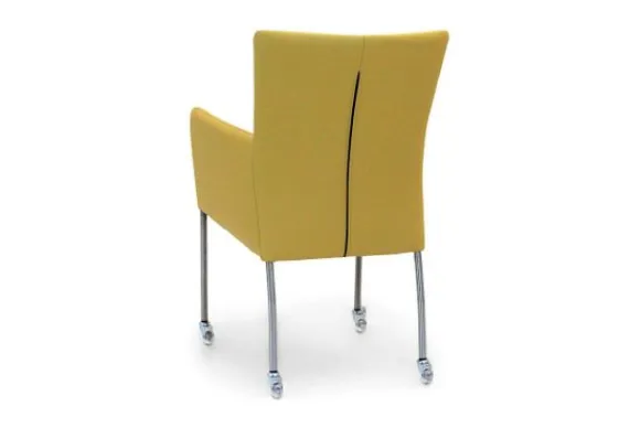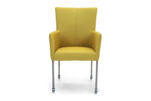 Deze stoel wordt standaard uitgevoerd met RVS poten en skate wieltjes.
