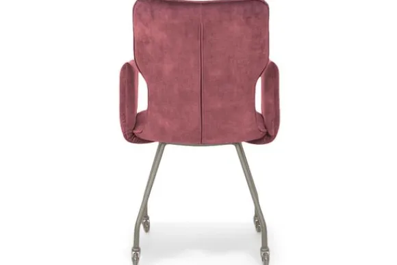 Eetkamerstoel Larson van het merk Titan Design is beschikbaar in alle kleuren en in verschillende materiaalsoorten zoals stof, velvet en rundleder. De Larson stoel is beschikbaar in diverse uitvoeringen. Deze Larson is voorzien van armleuningen en zwart metalen poten met wieltjes. Deze stoel heeft een unieke uitstraling dankzij de opening tussen de arm- en rugleuning.