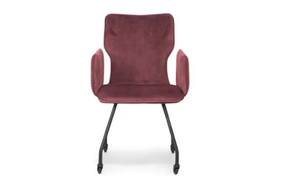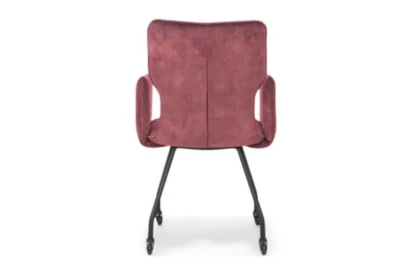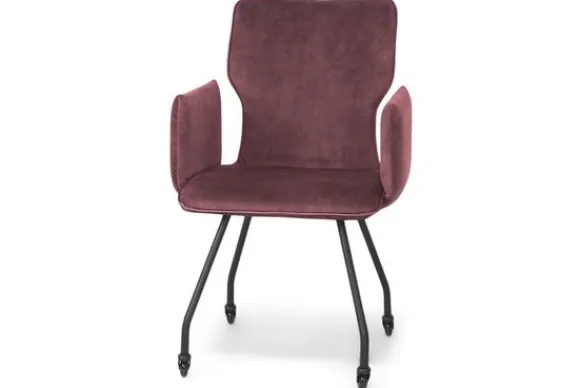Eetkamerstoel Larson van het merk Titan Design is beschikbaar in alle kleuren en in verschillende materiaalsoorten zoals stof, velvet en rundleder. De Larson stoel is beschikbaar in diverse uitvoeringen. Deze Larson is voorzien van armleuningen en zwart metalen poten met wieltjes. Deze stoel heeft een unieke uitstraling dankzij de opening tussen de arm- en rugleuning.