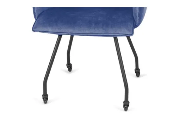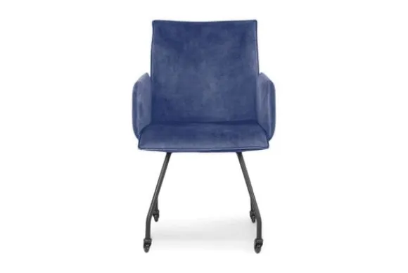 Eetkamerstoel Jussie van het merk Titan Design is beschikbaar in alle kleuren en in verschillende materiaalsoorten zoals stof, velvet en rundleder. De Jussie stoel is beschikbaar in diverse uitvoeringen. Deze Jussie is voorzien van armleuningen en zwart metalen poten met wieltjes. Je kunt er ook voor kiezen om de Jussie uit te voeren zonder wieltjes. Deze stoel heeft een unieke uitstraling dankzij de opening tussen de arm- en rugleuning.