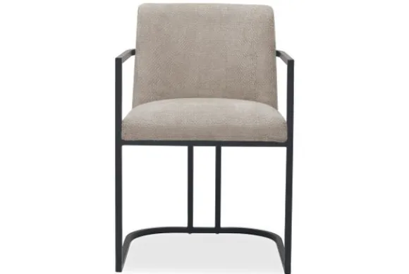 Eetkamerstoel Archi AM 0027 van het merk Tower Living is een toonbeeld van hedendaags design met een ingetogen, luxe uitstraling. De zachte beige stoffering brengt een warme, natuurlijke sfeer in de ruimte, terwijl het zwart metalen frame zorgt voor een krachtig contrast en een moderne belijning die het ontwerp extra karakter geeft.