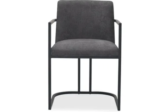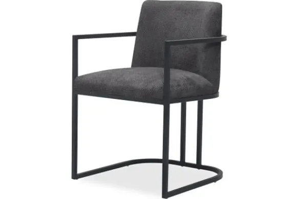 Eetkamerstoel Archi AM 0026 van het merk Tower Living is een stijlvolle mix van kracht en verfijning, waar het grafietkleurige textiel subtiel contrasteert met het strakke, zwarte metalen frame. De open armleuningen en rechte lijnen geven de stoel een moderne, industriële uitstraling, terwijl de zachte bekleding zorgt voor een comfortabel zitgevoel dat uitnodigt tot lange, ontspannen diners.