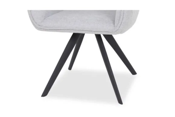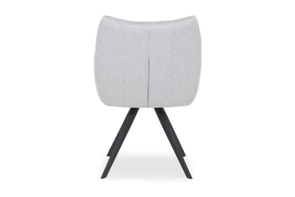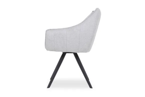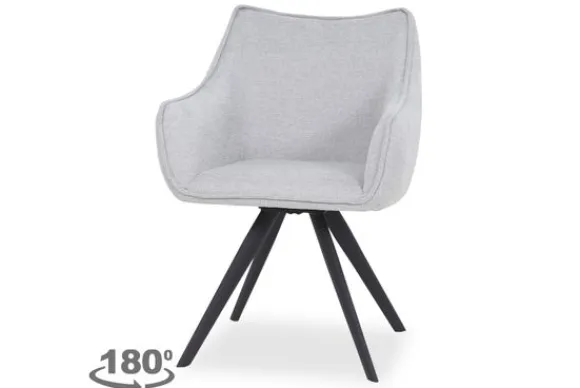 Eetkamerstoel Riviera AI 0121 Light Grey van het merk Tower Living is beschikbaar in drie kleuren stof: donkergrijs, grijs en lichtgrijs. De Riviera is voorzien van zwart metalen poten en heeft armleuningen. De kuip is afgewerkt met geknepen naden. In de achterkant van de rugleuning zitten verticale stiksels. Deze stoel is 180 graden draaibaar en is voorzien van een terugdraaisysteem. Door het terugdraaisysteem kun je de zitting van de stoel draaien en daarna zal deze uit zichzelf weer terug draaien naar het midden.