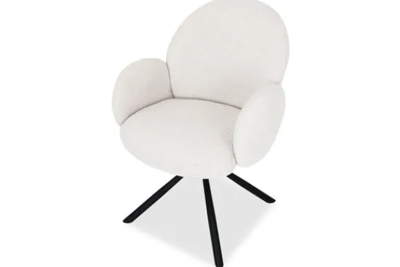 De Imola eetkamerstoel wordt geleverd in de stof Ascot en is beschikbaar in de kleuren Wit, Antraciet en Beige en heeft een metalen stoelpoot. Door de ronde vormen van de rug- en armleuningen krijgt de stoel een elegante look.