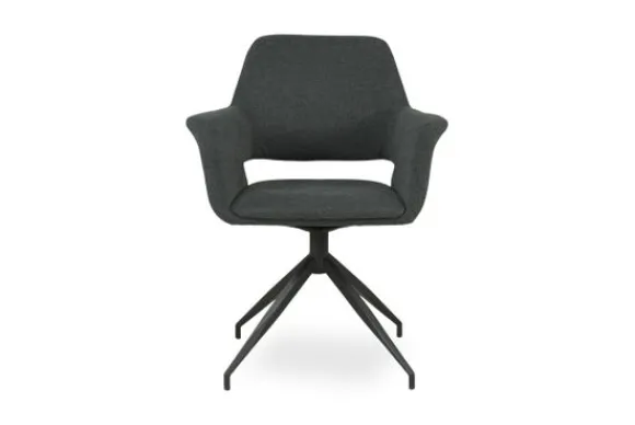 Eetkamerstoel Maeve – antraciet van het merk Veyron is beschikbaar in de volgende twee kleuren gemĂȘleerde stof Beltfast: antraciet en grijs. Deze stoel is bekleed met de stof Beltfast 39. Maeve is voorzien van armleuningen en een opening onderaan de rugleuning. Deze stoel is 180 graden draaibaar en is voorzien van een terugdraaisysteem. Door het terugdraaisysteem kun je de zitting van de stoel draaien en daarna zal deze uit zichzelf weer terug draaien naar het midden.