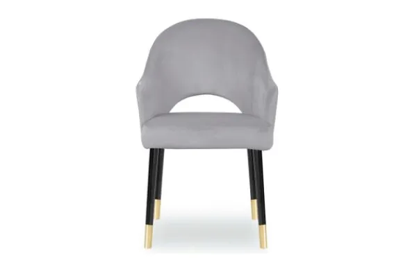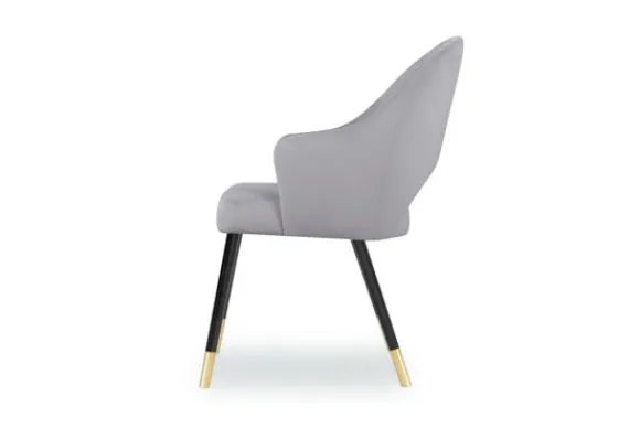 Eetkamerstoel Seine van het merk Vie Chic is beschikbaar in alle kleuren en in verschillende materiaalsoorten zoals stof, velvet en microvezel. Je kunt kiezen uit verschillende pootkleuren. Een goud detail onderaan de poten zorgt voor een extra detail. De Seine heeft een opening onderin de rugleuning en is voorzien van armleuningen.