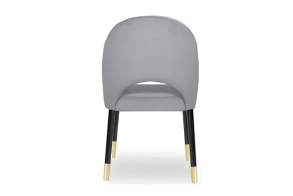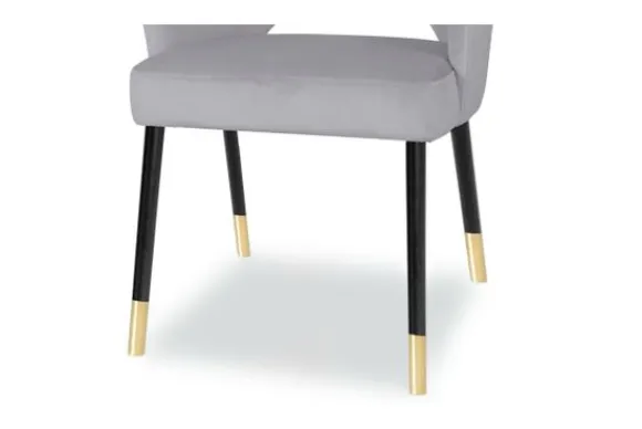 Deze eetkamerstoel wordt standaard uitgevoerd met houten poten in de kleur zwart met gouden uiteinden.