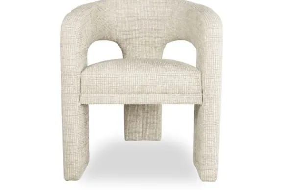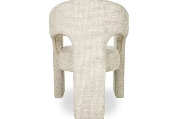 Eetkamerstoel Sylvana van het merk Vie Chic is een opvallende stoel met een strak ontwerp. De gesloten basis en volledige stoffering geven een rustig geheel.