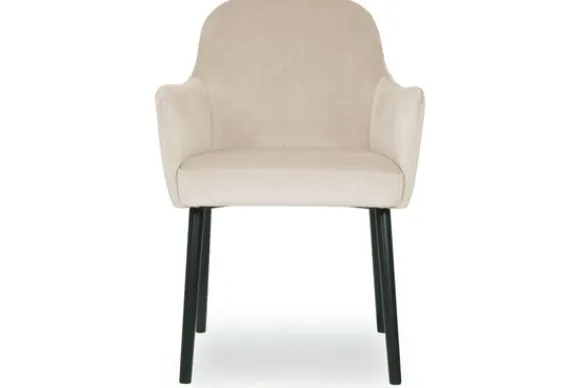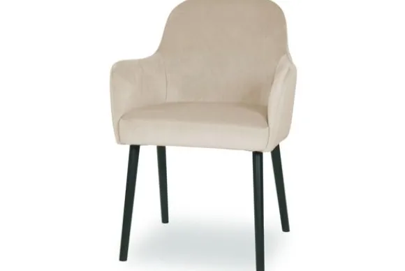 Eetkamerstoel Juif II van het merk Vie Chic is beschikbaar in alle kleuren en in verschillende materiaalsoorten zoals stof, velvet en microvezel. Je kunt kiezen uit verschillende pootkleuren. Een goud detail onderaan de poten is optioneel. De Juif is voorzien van armleuningen en een gladde rugleuning.