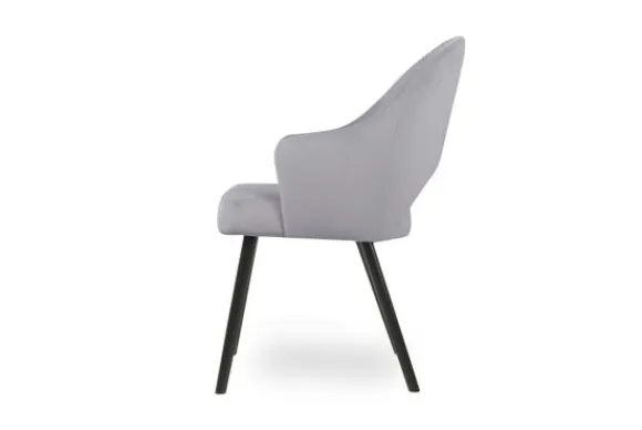 Eetkamerstoel Seine van het merk Vie Chic is beschikbaar in alle kleuren en in verschillende materiaalsoorten zoals stof, velvet en microvezel. Je kunt kiezen uit verschillende pootkleuren. Een goud detail onderaan de poten is optioneel. De Seine heeft een opening onderin de rugleuning en is voorzien van armleuningen.