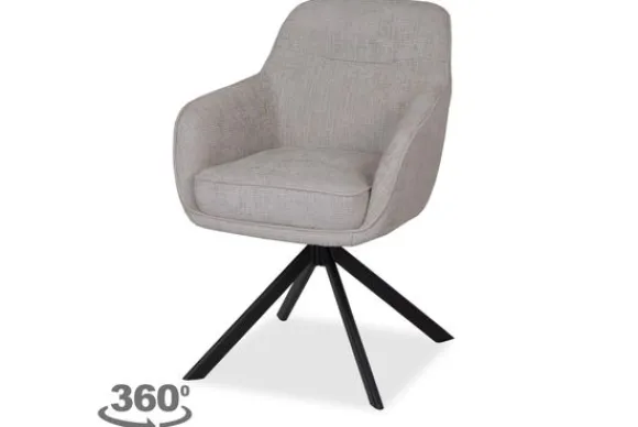 Eetkamerstoel Irene Baltic 0025 Grijs van het merk Wowen is beschikbaar in drie verschillende kleuren. De hoge zwart metalen poten zorgen er voor dat de stoel er ruimtelijk uitziet. Deze stoel is 180 graden draaibaar en is voorzien van autoreturn. Door het terugdraaisysteem kun je de zitting van de stoel draaien en daarna zal deze uit zichzelf weer terug draaien naar het midden. De stoel heeft een verticale inkeping in de rugleuning wat voor een leuk detail zorgt en is voorzien van armleuningen.