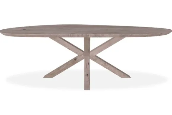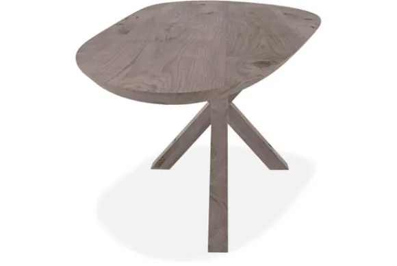 Eettafel Alvin van het merk De Houtmaatschappij heeft een slippervormig blad dat 2+2 cm is opgedikt.