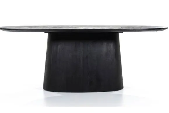 Eettafel Aron van het merk Eleonora is een stijlvolle tafel gemaakt van mangohout met een diepe, zwarte afwerking. De combinatie van het taps toelopende blad en de robuuste poot zorgt voor een krachtige uitstraling met een moderne twist. Dit meubelstuk geeft direct karakter aan jouw eetruimte.