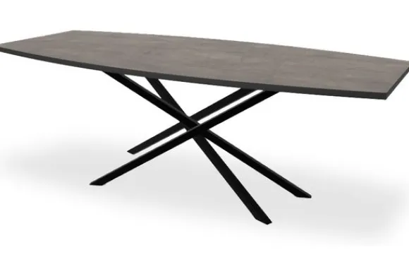 Eettafel Mendoza van het merk Every Table BV heeft een tonvormig HPL blad van 2,8 centimeter dik. De vorm geeft de tafel een strakke en eigentijdse uitstraling. Het blad is standaard voorzien van een rechte rand.