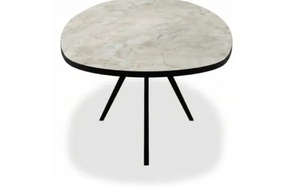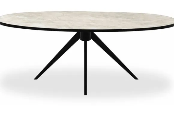 Eettafel San Lorenzo van het merk Every Table BV is uitgevoerd met een stomp ovaal blad van HPL. De tafel heeft een centrale spinpoot van zwart metaal en biedt veel ruimte rondom. HPL is een sterke en onderhoudsvriendelijke kunststof toplaag die bestaat uit samengeperste lagen, waardoor het blad krasvast, kleurvast en slijtvast is.