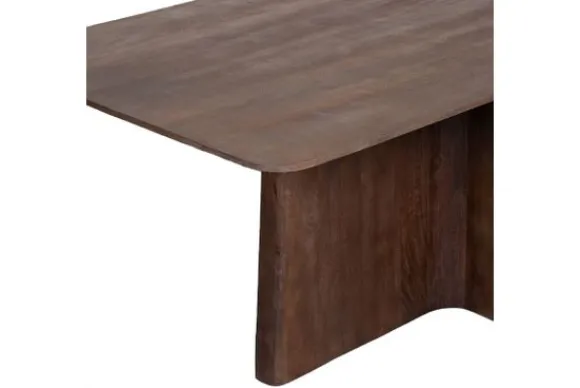 Eettafel Scott van het merk LABEL51 is een stijlvolle en moderne toevoeging aan elke eetkamer. Deze tafel is vervaardigd uit hoogwaardig mangohout, wat zorgt voor een warme, rijke uitstraling. Het robuuste tafelblad en het unieke, geometrische onderstel geven de tafel een eigentijdse en toch tijdloze look. Het onderstel bestaat uit twee stevige, schuingeplaatste panelen die elkaar in het midden kruisen, wat niet alleen zorgt voor een uniek design, maar ook voor extra stabiliteit. De donkere espresso-kleur benadrukt de natuurlijke houtnerf, wat elk exemplaar een uniek karakter geeft.