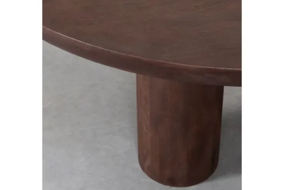 Olly is uitgevoerd in Espresso mangohout, een prachtig materiaal met een diepe, intense kleur die luxe en warmte uitstraalt. Het dikke, ronde tafelblad zorgt voor een robuuste, stoere uitstraling en vormt een stevig middelpunt in je eetkamer.